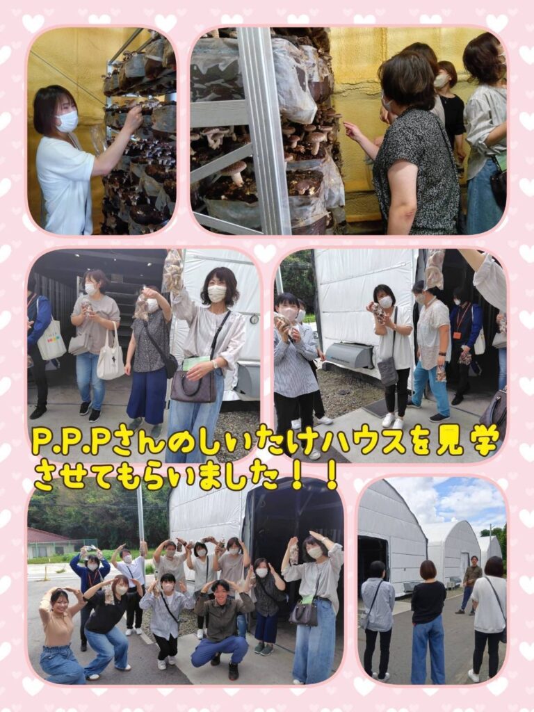 ぶどうの会では、9月26日に社会福祉法人P.P.P.さんへ視察研修に行きました。詳しく事業所の説明をしてもらった後、ヴァンベールさんでランチをいただいています。料理はとても美味しく、キレイでゆったりした空間で楽しい時間を過ごせました。椎茸班や農業班、食堂班の仕事見学、グループホームの見学、念願の椎茸狩り体験もさせてもらい、至れり尽くせりの視察研修でした。改めて高梁市内にどのような事業所があるのかを知ることができ、とても貴重な体験ができました。この度、ご協力していただいたP.P.P.の皆様、誠にありがとうございました。
